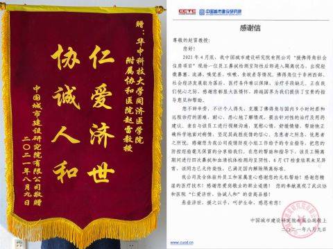 中国城市建设研究院总部在得知其员工完全康复后,向武汉协和医院和赵雷教授本人寄出感谢信和锦旗。此次对外援助体现了武汉协和医院医疗专家团队精湛的医术和勇于担负、善于担当的精神,对赵雷教授而言,这也是诠释大家守望相助、共同抗疫的生动实践。
