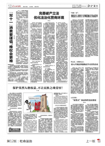 11月9日,民建武汉市社会与法制委员会主任、武汉市政协委员、北京京师(武汉)律师事务所副主任李春生撰写的《完善破产立法,优化法治化营商环境》被《人民政协报》刊用。