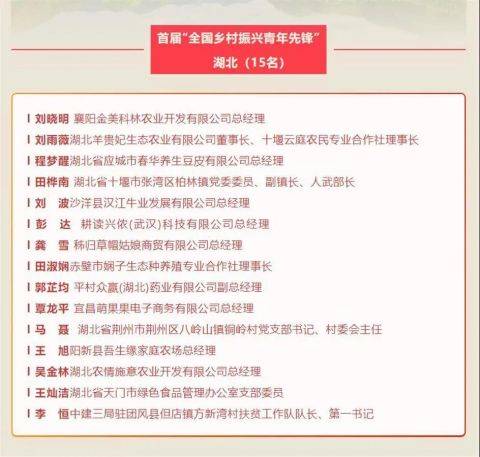 湖北入选的15名青年先锋,涵盖涉农创业、乡村治理、科技兴农、乡村社会实践等领域,他们都是在各自平凡的岗位上做出了不平凡的业绩,用实际行动生动诠释了新时代青年投身乡村振兴的责任担当。
