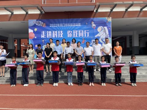 活动现场,民建天门市委妇女工作委员会的爱心人士代表为该校留守学生赠送了科普书籍、文具、书包等爱心物资,并作为科技志愿者开展了科普宣传和互动体验活动,结合生活实际向师生宣传实用科技知识,营造了讲科学、爱科学、学科学、用科学的良好氛围。