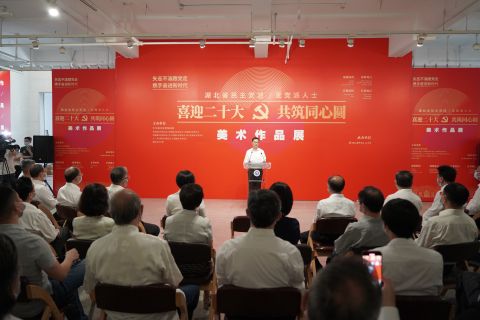 9月26日,湖北省各民主党派、无党派人士“喜迎二十大,共筑同心圆”美术作品展在湖北美术学院开幕,中共湖北省委常委、省委统战部部长宁咏出席并致辞。各民主党派省委会主委、专职副主委和无党派人士代表出席活动。民建湖北省委专职副主委宋君慧,民建省委文化委副主任、省书法家协会副主席王勇,民建会员、武汉梦翰艺术馆馆长周汉章,民建会员、仙桃复州画院副院长彭国祥等参加开幕式。民建湖北省委推荐了45幅会员书画作品参加本次展览。
