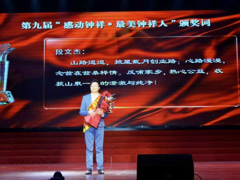 3月5日晚,湖北省钟祥市第九届“感动钟祥•最美钟祥人”颁奖典礼在该市大礼堂隆重举行,荆门民建会员段文杰等11名基层模范个人和1个先进集体获得此次“感动钟祥•最美钟祥人”殊荣,来自钟祥全市各行各业代表共700余人聚精会神地观看了颁奖晚会。该评选活动自2013年开展以来,有效激励和鼓舞广大市民向模范学习,爱岗敬业,弘扬凡人善举,自觉践行社会主义核心价值观已蔚然成风,近年来,先后有5人被评选为“中国好人”、14人被评选为“荆楚楷模”。
