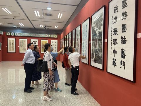 在美术作品展厅,会员们认真欣赏着一幅幅书画和摄影作品,它们展现了民主党派艺术家们对中国共产党和多党合作事业的坚决拥护、对新时代的热情讴歌、对祖国大好河山的满腔热爱。