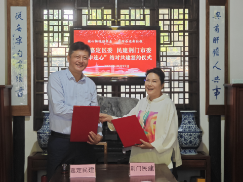 10月27日上午,民建荆门市委与民建嘉定区委“春申连心”友好地方组织签约仪式在民建嘉定区委会员之家--嘉研苑隆重举行,丁萍和丁新华代表双方签定《缔结友好地方组织协议书》,开启了荆嘉两地民建组织友好交往新篇章。此次结对共建旨在赓续“与党同心、爱国为民、精诚合作、敬业奉献”的优良传统,共同推进在自身建设、参政履职、社会服务和对外交往等领域的交流互鉴,携手推动荆嘉两地经贸文化合作交流向更大范围、更广领域发展。