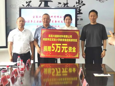 5月31日下午,民建会员企业宜昌兴越新材料有限公司通过猇亭区红十字会向区实验小学教育集团高家校区定向捐赠五万元,以期改善高家校区的教学设施,为学生们创造更加舒适的学习环境。