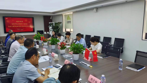 在六国化工,公司负责人现场向调研组介绍企业情况。 在湖北九厦环保科技有限公司,公司负责人向调研组一行详细介绍了磷石膏产业的生产规模、经营状况及在新兴领域突破性研发情况。