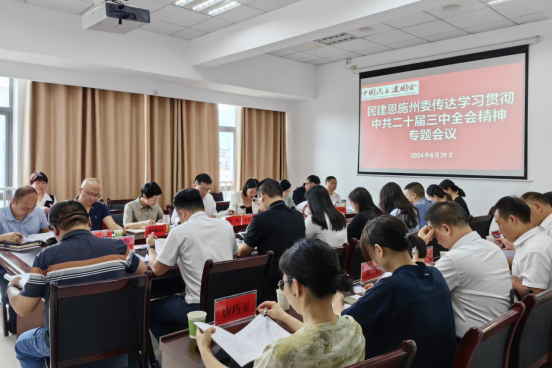 会议集中学习了《中国共产党第二十届中央委员会第三次全体会议公报》《中共中央关于进一步全面深化改革推进中国式现代化的决定》、习近平总书记关于《中共中央关于进一步全面深化改革、推进中国式现代化的决定》的说明、习近平在中共中央就当前经济形势和下半年经济工作召开的党外人士座谈会上的重要讲话精神;传达学习了“学习贯彻党的二十届三中全会精神中央宣讲团湖北报告会”会议精神、中共恩施州委八届九次全会精神;学习《民建中央关于学习贯彻中共二十届三中全会精神的通知》文件精神。