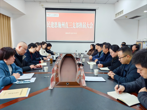 12月15日,民建恩施州直三支部成功召开换届工作会议,顺利完成换届工作。民建恩施州委专职副主委谭晋,民建州委委员、州直总支主委刘海清,民建州委组织科科长康银蔓及支部会员共20余人参加会议。