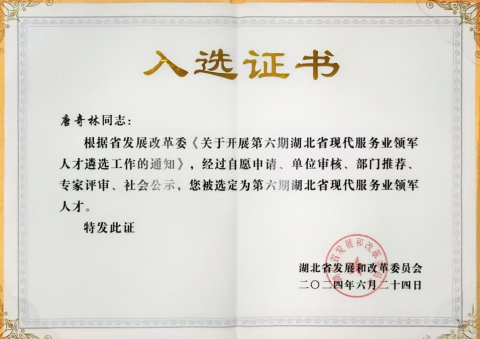 2024年6月份,按照第六期湖北省现代服务业领军人才遴选工作安排,省发改委组织开展了第六期湖北省现代服务业领军人才遴选工作,并组织相关专家进行了评审,拟定了第六期湖北省现代服务业领军人才入选名单,省直十支部会员、武汉精测电子集团股份有限公司知识产权负责人唐奇林成功入选!