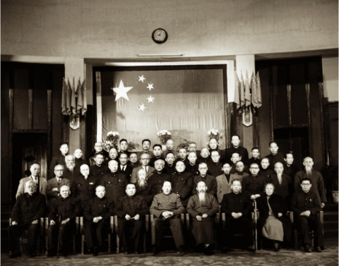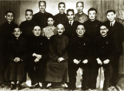 1949 年 9 月 30 日,中央人民政府全体委员合影 。二排左七为黄炎培,三排右四为李烛尘