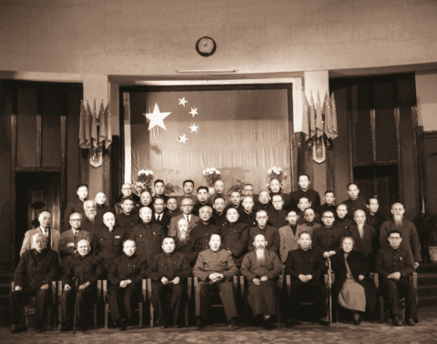 1949年9月30日,中央人民政府全体委员合影。二排左七为黄炎培,三排左四为李烛尘。