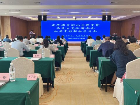 4月16日,民建湖北省委以线上线下相结合的方式,在武汉洪山大厦举办建华课堂湖北分课堂暨各民主党派省委会机关干部联合学习会。省台盟主委刘江东、省九三学社专职副主委付文芳、省民盟秘书长李金玲、省民进秘书长张琼,各民主党派省委会机关干部以及民建省直各支部会员代表、各市(州)班子成员、专职干部、骨干会员等参加学习。民建省委专职副主委刘运梅主持会议。