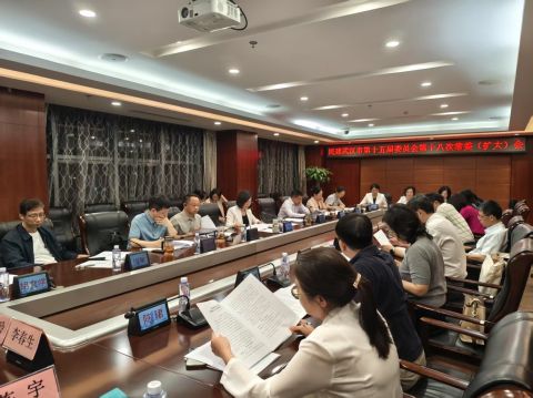 4月28日,民建武汉市委会在市民主党派大楼召开第十五届十八次常委(扩大)会议。民建武汉市委会主委穆书芹,副主委张再强、吴立群、刘成奎,专职副主委徐莉,秘书长徐敏及全体常委参会,部分区级组织主委及专委会主任列席。穆书芹主持并讲话。
