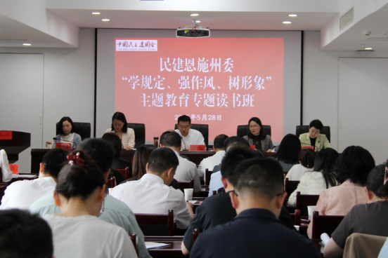 5月28日,民建恩施州委举行“学规定、强作风、树形象”主题教育专题读书班,原原本本学习习近平总书记《论党的自我革命》《习近平关于加强党的作风建设论述摘编》、中共中央八项规定及其实施细则精神、深入贯彻中共中央八项规定精神的成效和经验等。民建湖北省委常委、民建恩施州委主委、州文旅局局长张伟主持学习会议,民建恩施州委班子成员、州委委员及机关干部共同参加学习。