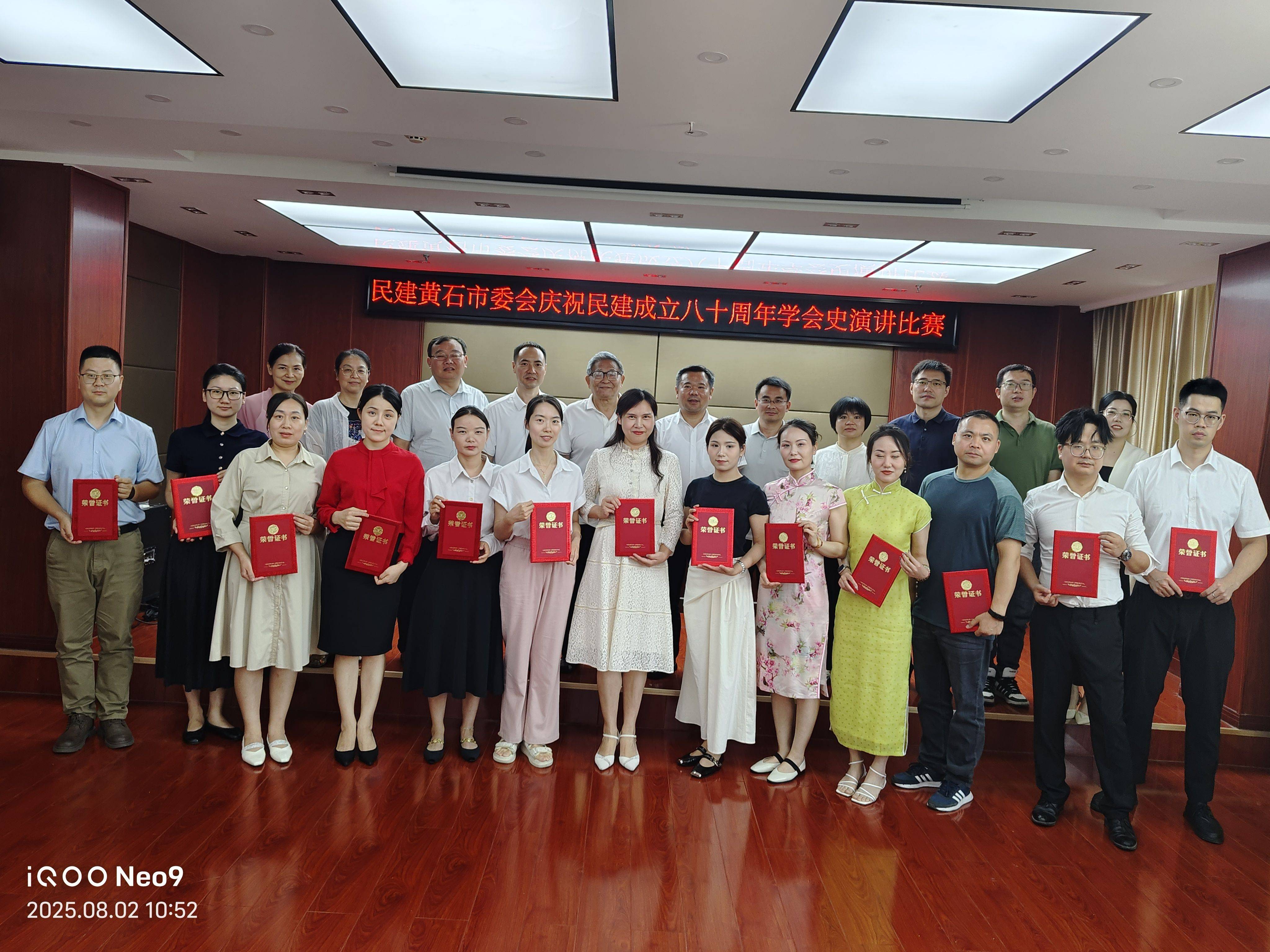 8月2日,为庆祝中国民主建国会成立80周年,深入开展“学规定、强作风、树形象”主题教育,传承多党合作优良传统,民建黄石市委会在民主党派五楼会议室举办“八十载薪火相传 建新功再续华章——庆祝民建成立80周年学会史演讲比赛”。黄石市政协副主席、民建黄石市委主委李义词出席活动。