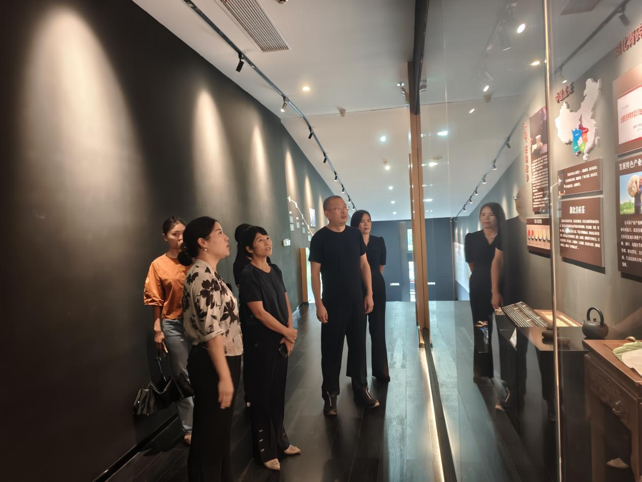 走进鑫鼎生物科技有限公司,张琼重点考察了企业智能车间及长盛川文化展厅。在智能生产车间,张琼详细了解了茶叶发酵、转化等关键工艺的智能化应用情况。当得知企业通过智能化系统实现茶叶生产全流程精准控制时,她给予充分肯定,认为这种“传统工艺+现代科技”的模式既提升了生产效率,又保证了茶叶品质,值得推广。随在长盛川文化展厅,张琼深入了解了长盛川茶叶的历史传承、品牌发展及市场布局。她对企业将茶文化与现代经营相结合的做法表示赞赏,鼓励企业继续深挖文化内涵,讲好品牌故事,推动茶产业与文旅产业深度融合,进一步提升宜昌茶文化的知名度和影响力。