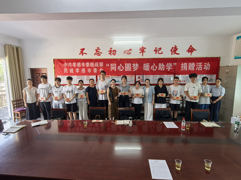 8月27日,民建孝感市委会赴中共市委统战部驻点村安陆市烟店镇胜利村及联系社区胡邱社区,开展“同心圆梦 暖心助学”捐赠活动,为家庭经济困难的2025年高考优秀学子送去助学金。中共孝感市委统战部副部长雷娟出席活动并讲话,民建孝感市委会专职副主委戴琴荣主持活动,学生代表及民建会员企业家等20余人参加活动。