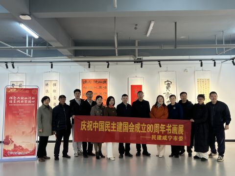 12月19日上午,由民建咸宁市委主办,民建湖北科技学院支部、咸宁市民建书画院承办的庆祝中国民主建国会成立80周年书画展在湖北科技学院美术馆隆重开幕。湖北科技学院党委书记闫英姿、党委常委、副校长胡旺平,咸宁市委统战部常务副部长熊斌,民建咸宁市委主委王丹青、专职副主委张恒、市委委员何岳球以及民建湖北科技学院支部、咸宁市民建书画院会员参加活动,湖北科技学院党委统战部常务副部长吕仲茂主持开幕式。