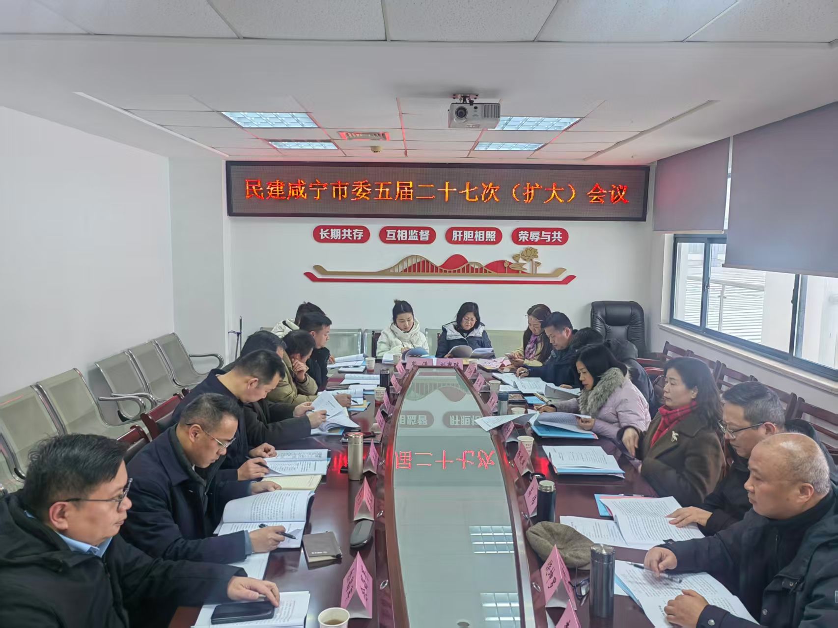 民建咸宁市委理论学习中心组集中学习了民建十二届四中全会精神和咸宁市两会精神。会议讨论研究了咸宁市民建企业家协会二届三次会员大会、民建咸宁市五届五次会员大会以及“同心思源助发展”联谊活动有关事宜;部署了基层组织换届前期准备工作,强调要严格程序、优化结构,确保换届工作平稳有序推进;通报了2025年度社情民意信息与提案工作成效;各基层组织汇报了2025工作开展情况和2026年工作计划。