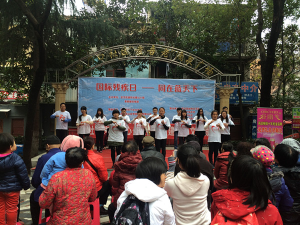12月3日是国际助残日,武汉民建阳光爱心服务小组联合黄鹤楼街残联于11月30日在武昌西厂口社区广场举办“世界助残日 同在蓝天下”爱心献演活动。