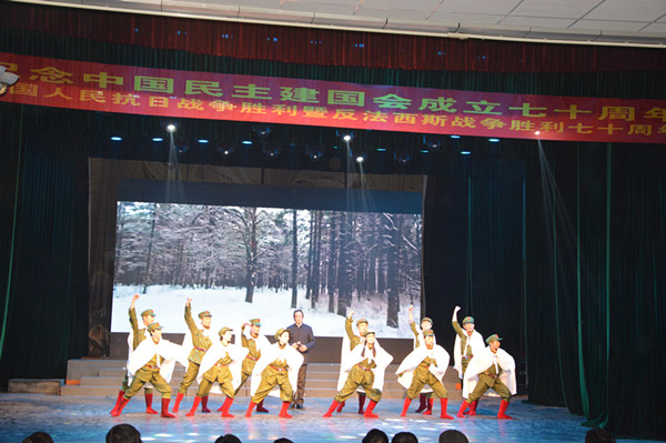 民建荆州市委纪念中国民主建国会成立七十周年文艺晚会于2015年11月25日晚上七点半在荆州市沙市区碧波路川祖宫(市艺术剧院)举行。中共荆州市委统战部纪检书记郭红萍,市政协秘书长周晓君,市委统战部秘书长卢泯敏,民革荆州市委专职副主委袁良政,民盟荆州市委副主委谭文,九三学社专职副主委汪舜阶及市民主党派机关全体干部应邀参加了晚会。民建荆州市委主委魏昌松,副主委毛建华、童德泉、向光明等观看了文艺晚会。