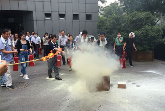 “各楼层注意,办公大楼一层发生火灾,立即疏散!”随着广播声和警报声响起,几分钟后,大楼全体工作人员按照课堂讲授的逃生方法,用湿毛巾捂住口鼻,迅速通过安全通道撤离到楼下空旷地带。逃生疏散演练后,大家在消防员和消防志愿者的指导下,拿起罐装灭火器,体验模拟火灾场景下灭火器的使用方法及操作要领。