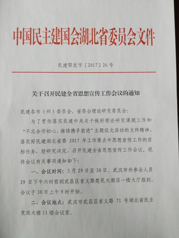 关于召开民建全省思想宣传工作会议的通知