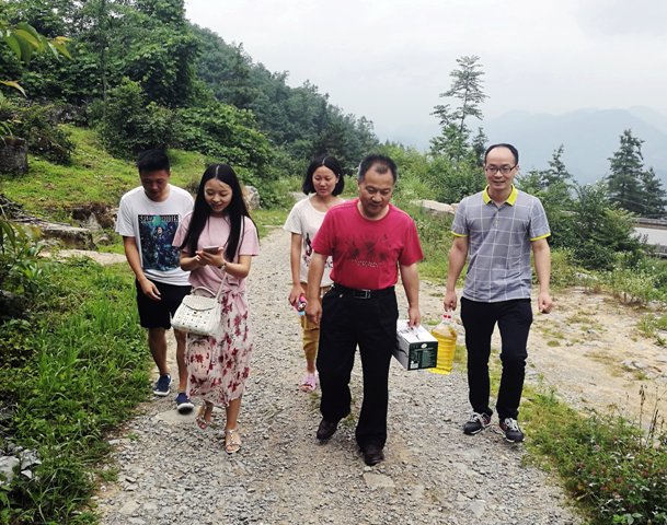 2017年7月5日,恩施州政协副主席、民建恩施州委主委谭建军一行,来到恩施市沐抚办事处前山村新房子组,走访慰问其结对帮扶的精准扶贫户及贫困学生,并调研政协委员参与精准扶贫“三大工程”工作。