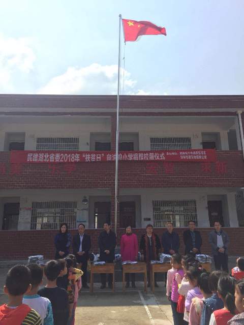 2018年10月17日,是全国第五个“扶贫日”,民建湖北省委举行了向油榨小学捐赠校服活动。民建湖北省委社会服务部部长杨林出席并讲话。
