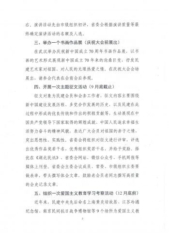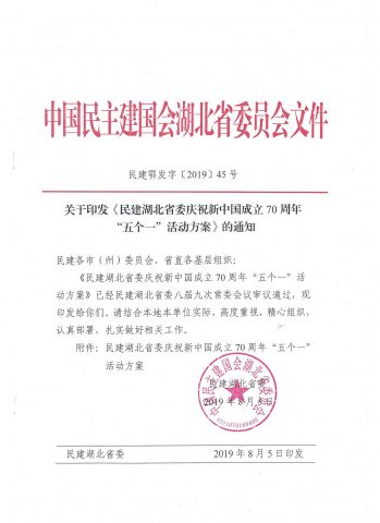 关于印发《民建湖北省委庆祝新中国成立70周年“五个一”活动方案》的通知