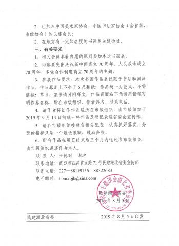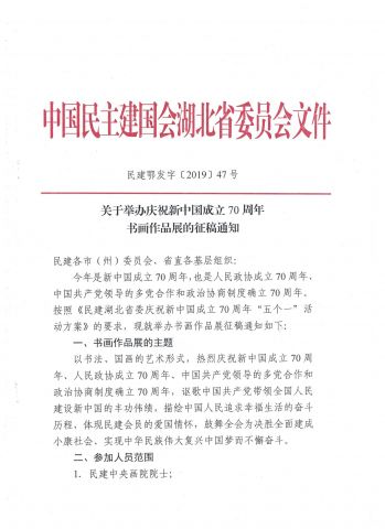 关于举办庆祝新中国成立70周年书画作品展的征稿通知