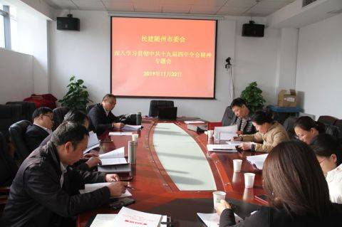 11月22日,民建随州市委组织全体委员、机关干部及各基层主委集中学习中共十九届四中全会精神。会议由民建随州市委专职副主委肖英主持。