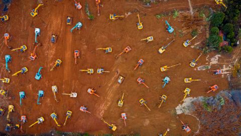 《挖机大战火神山》1月24日,上百台挖掘机同时进场作业,武汉火神山医院正式动工开建