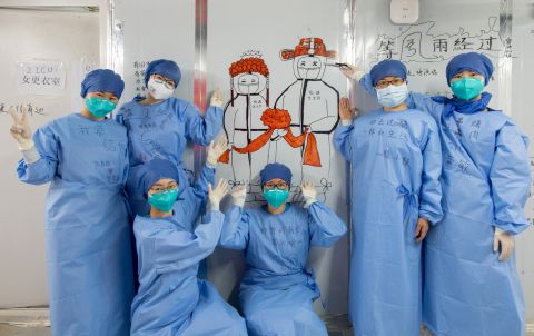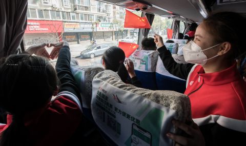 《送别》3月17日,前往天河机场的大巴上,海南援鄂医疗队队员与武汉市民们道别